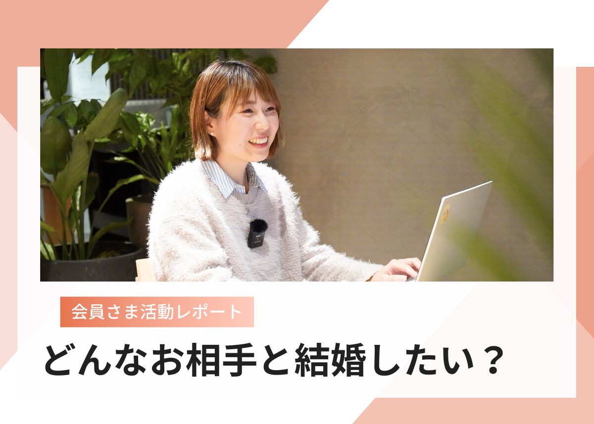 ですが、どのような人と結婚したいか、その人と結婚したらどういう自分でいられるかなど、思いついたままに話していくうちに、自分が結婚するうえで大切にしたいものや、どういう自分でありたいかなど、自分の理想とする結婚がだんだんとはっきりしていき驚きました。