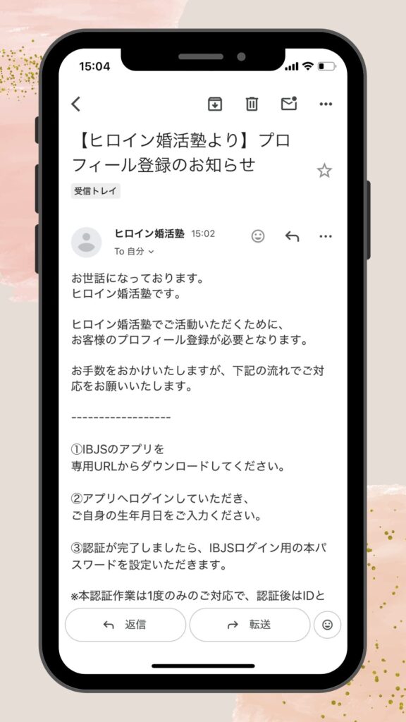 まずは頂いたメールアドレスに「プロフィール登録のお知らせ」という件名のメールアドレスが届いているかご確認ください✨