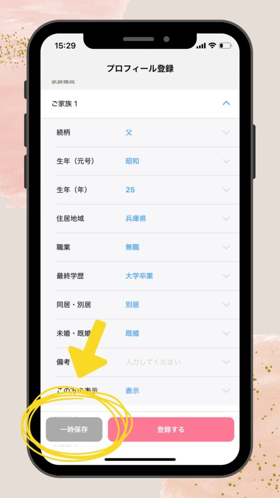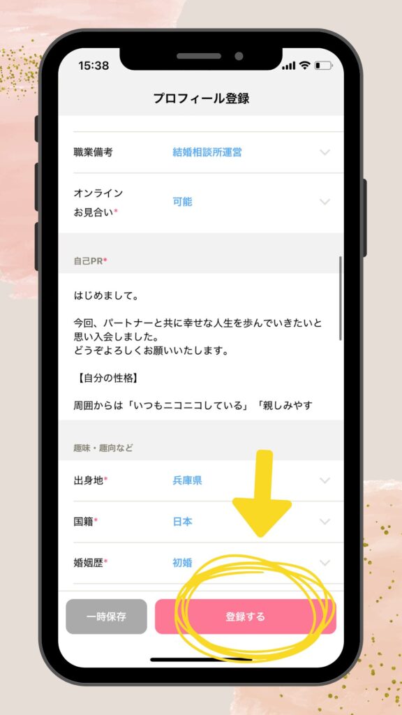 自己PRも各項目も全部入力ができた方は、最後に「登録する」のボタンを押してください✨